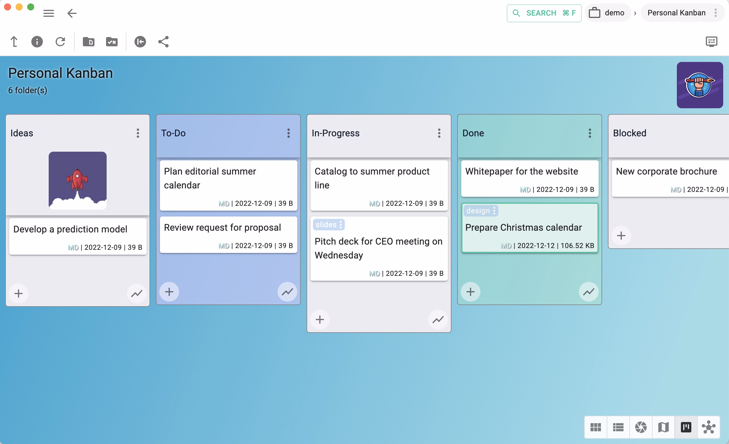 In every folder you can have markdown files containing lists of related tasks and to-dos. Think of h...